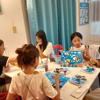 오늘도 학교에서 돌아와 간식을 먹고 아트 클라스를 참여합니다.