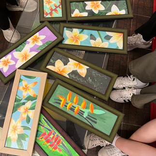 사이판 자연에서 영감을 얻어 열대 식물과 동물들을 액자에 그려봅니다.